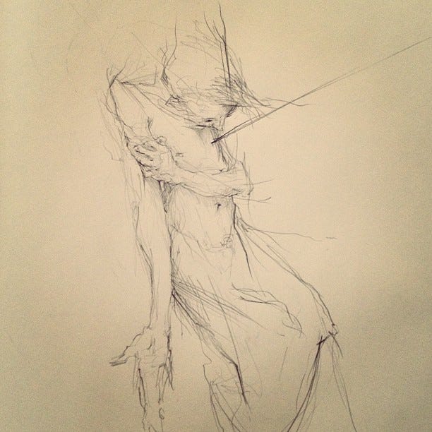 Two steps forward, then the ripcord that is pain drops us both to our knees. I think it’s the unexpectedness that causes the most stress to the nervous system. A situation of thinking things might be getting better. Gentler. Softer. Then the hit comes like a weighted slap to the sternum. It’s the absence of a tempo. There are some patterns, but it’s the “good times” shattering over and over that creates this ongoing unease. Erase the warmth and smiling - we’re in the ever-present panic room again, trying to sooth our inner exhaustion. Pain is a dark force that is rocking Tabitha’s system, and my own alongside it. It’s like a dark entity that’s lodged itself deep inside her sacrum, who is inhaling her life force through a rift in her spine. A child whose constant screaming only she can hear, and I am witness to my love convulsing and sobbing. It’s hard to get anything done during these times.